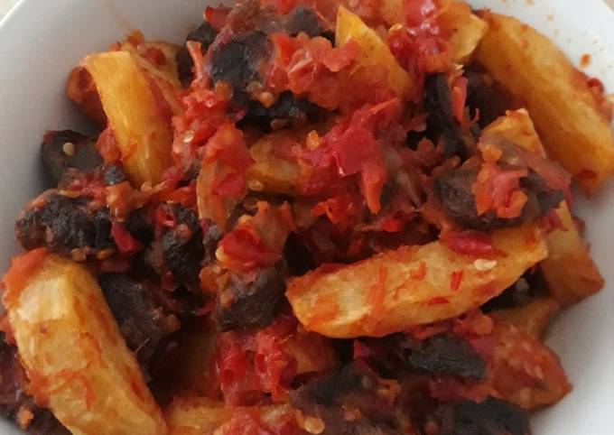 Cara menyiapkan Balado meat with potato wedges: