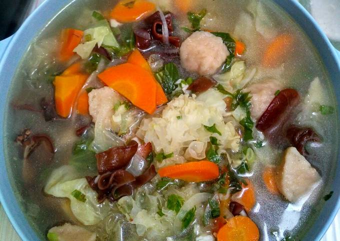 Nah, kali ini kita coba, yuk, variasikan sayur sop sendiri di rumah. Tetap berbahan sederhana, sajian ini bisa memberi manfaat untuk membantu menjaga kesehatan tubuh kita. Anda bisa membuat Sayur sop menggunakan 17 bahan dan 5 langkah pembuatan. Berikut ini langkah-langkah untuk membuat hidangannya.
